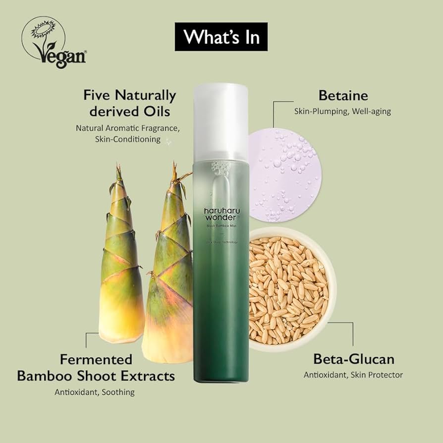 The HaruHaru Wonder Black Bamboo Mist offers a range of benefits that rejuvenate and refresh your skin:
